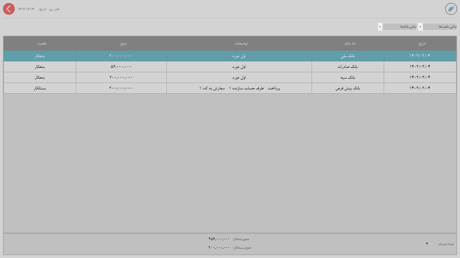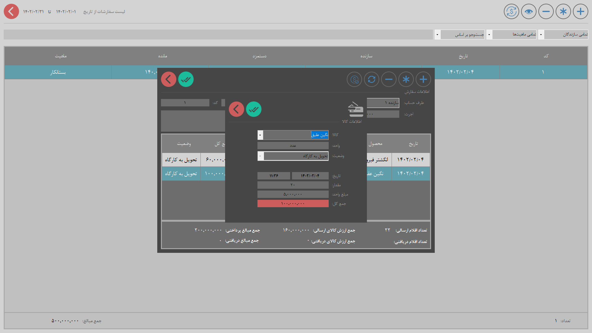 2. عملیاتها: شامل تراکنشهای حسابداری مجموعه میشود مانند: فاکتور جواهرسازی، فاکتور خرید، فاکتور فروش، پرداخت و دریافت و ...
